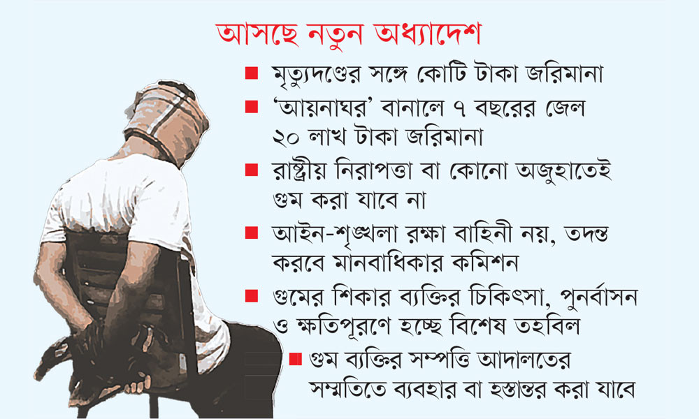 যে কারণে অধ্যাদেশ : মন্ত্রিপরিষদ বিভাগে পাঠানো খসড়া প্রস্তাবে বলা হয়েছে, জাতিসংঘের সাধারণ পরিষদে গৃহীত International Convention for the protection of All persons from Enforce Disappearance-এ বাংলাদেশ ২০২৪ সালের ২৯ আগস্ট অংশীদার হয়েছে। এই কনভেনশনের আলোকে এবং সংবিধানে সংরক্ষিত জীবন ও ব্যক্তিস্বাধীনতার অধিকার কার্যকর করার উদ্দেশ্যে গুম প্রতিরোধ, প্রতিকার ও সুরক্ষা অধ্যাদেশ ২০২৫ প্রণয়ন করা সমীচীন। গত বছর ৬ আগস্ট দ্বাদশ জাতীয় সংসদ ভেঙে দেওয়ায় গুম প্রতিরোধ, প্রতিকার ও সুরক্ষা অধ্যাদেশ ২০২৫-এর খসড়া প্রস্তুত করা হয়েছে। এ বিষয়ে গুমসংক্রান্ত তদন্ত কমিশনসহ অন্যান্য মানবাধিকার প্রতিষ্ঠান ও সংস্থার মতামতের আলোকে এই খসড়া প্রণয়ন করা হয়েছে।