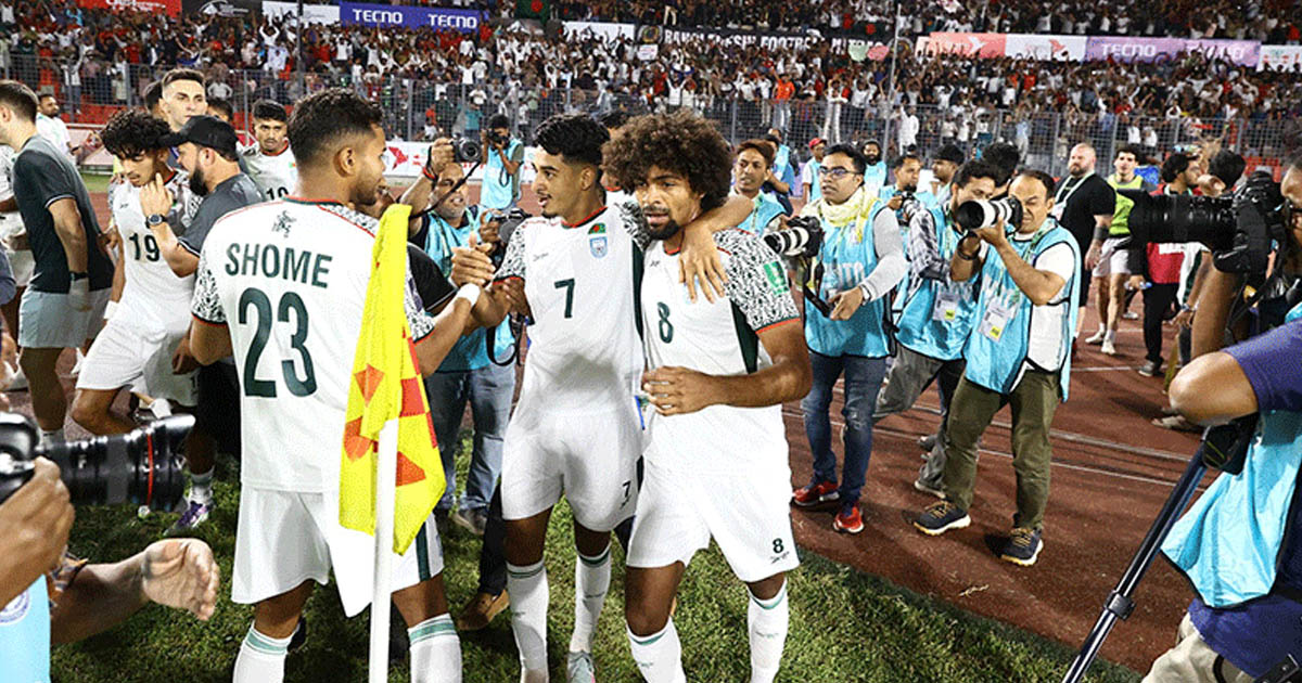 অবশেষে এল সেই মুহূর্ত। রেফারির শেষ বাঁশি বাজতেই গ্যালারিতে ছড়িয়ে পড়ল আনন্দ। হামজা চৌধুরী লুটিয়ে পড়লেন মাটিতে। শমিত শোম জড়িয়ে ধরলেন কিউবা মিচেলকে। এমন জয়ের তৃপ্তি পেতে কত বছরের অপেক্ষা করতে হয়েছে, তা নিশ্চয়ই জানেন। তারপরও বলে দিই—অপেক্ষাটা ২২ বছরের।