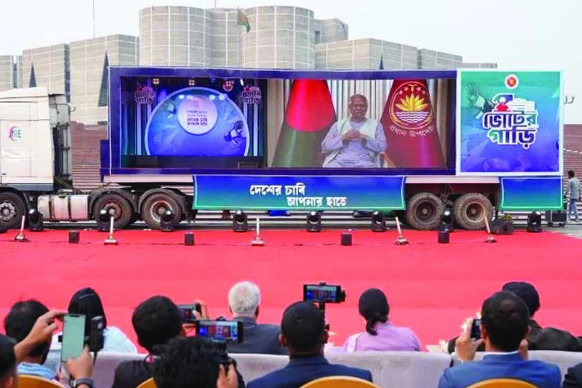 জানা গেছে, সংস্কৃতিবিষয়ক মন্ত্রণালয়ের উদ্যোগে ভোটের গাড়ি সারা দেশে ঘুরে বেড়াচ্ছে। এই গাড়ি থেকে সংসদ নির্বাচন ও জুলাই জাতীয় সনদের বিষয়ে গণভোটের বিষয়ে বিভিন্ন বার্তা দেওয়া হচ্ছে। এ ছাড়া ফেলানী হত্যা, আবরার ফাহাদ হত্যা, প্রতিবেশী দেশের প্রভাব ও নির্ভরশীলতার মতো ঘটনাগুলোও বিভিন্ন প্রামাণ্যচিত্রের মাধ্যমে দেখানো হচ্ছে।