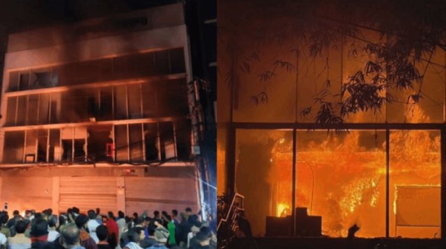 একই সময়ে উপস্থিত মব প্রথম আলোতে আগুন ধরিয়ে দেয়।