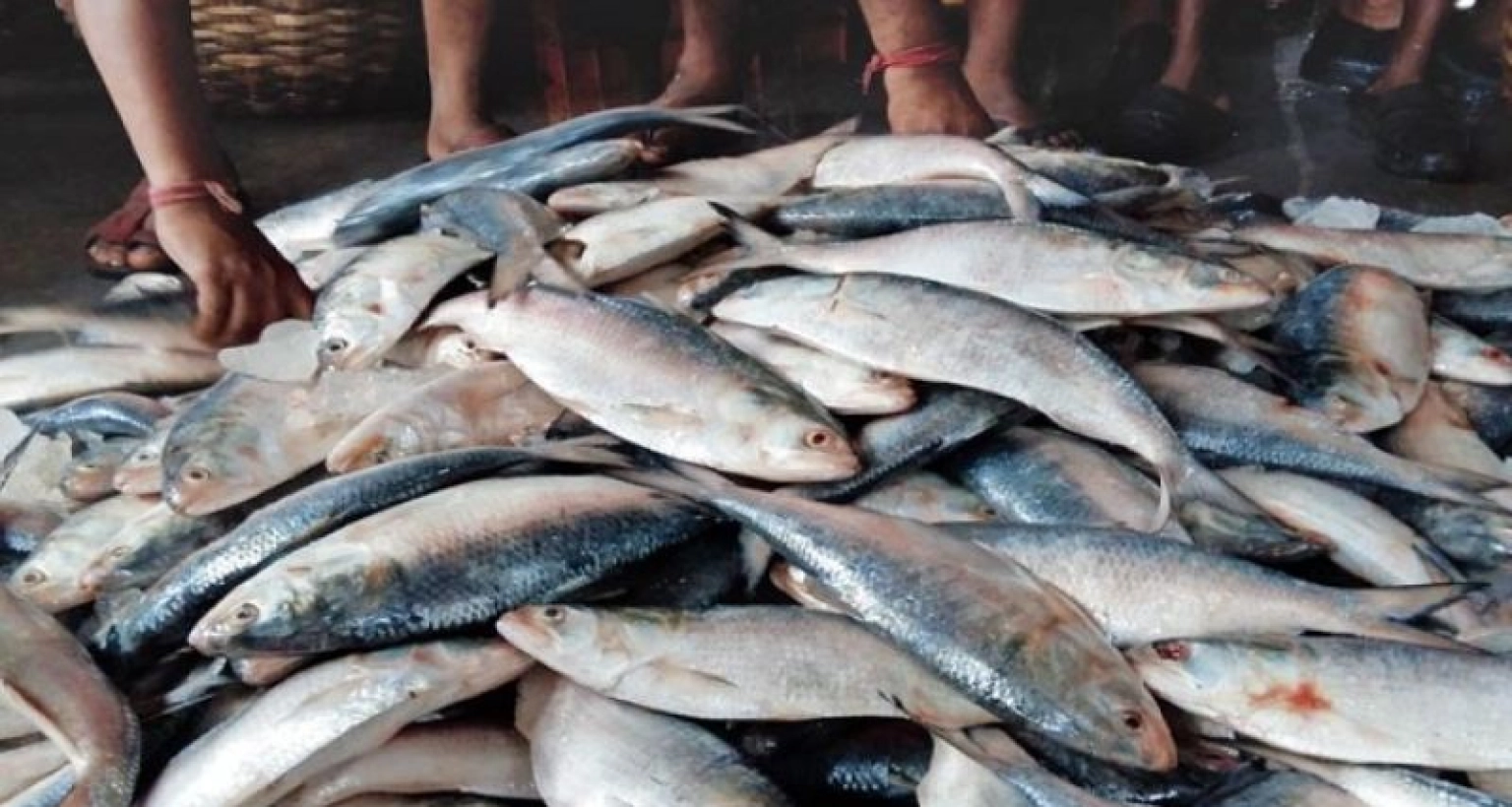 চাঁদপুর মাছঘাটে ইলিশে হাঁকডাকে মুখর পরিবেশ। ঘাটে ভিড়েছে ট্রলার, শ্রমিকরা ট্রলার থেকে ঝকঝকে রূপালি ইলিশ নামিয়ে আড়তের সামনে স্তূপ করে