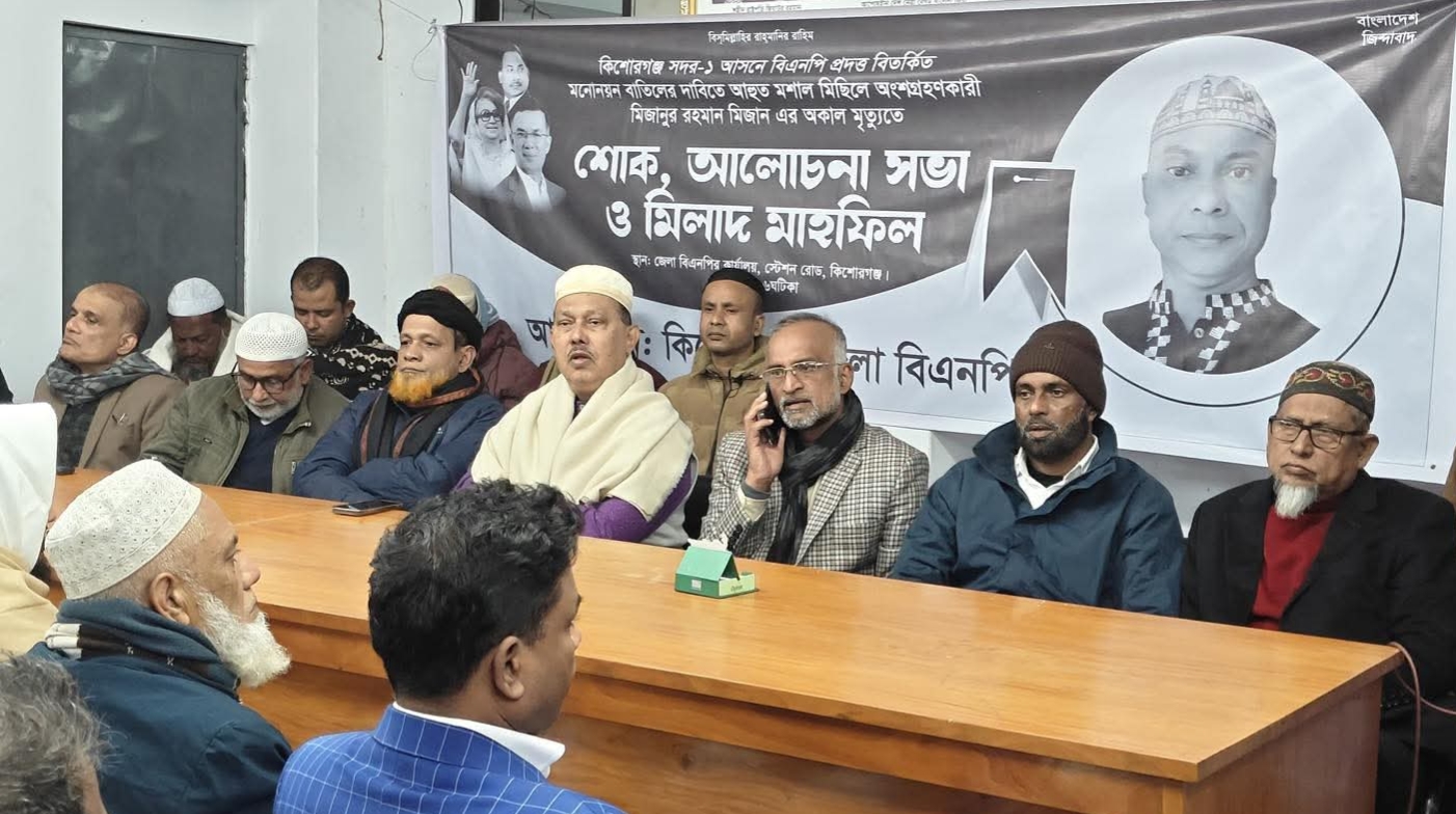কিশোরগঞ্জ-১ আসনে বিতর্কিত মনোনয়ন বাতিলের দাবিতে আন্দোলনে অংশগ্রহণকারী মিজানের মৃত্যুতে শোকসভা ও মিলাদ