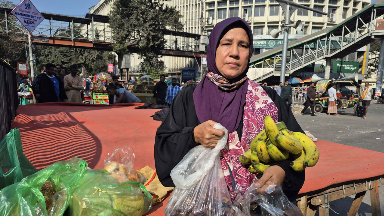 বিক্ষোভকারীদের জন্য কলা-পাউরুটি নিয়ে শাহবাগে গৃহিণী রাশিদা